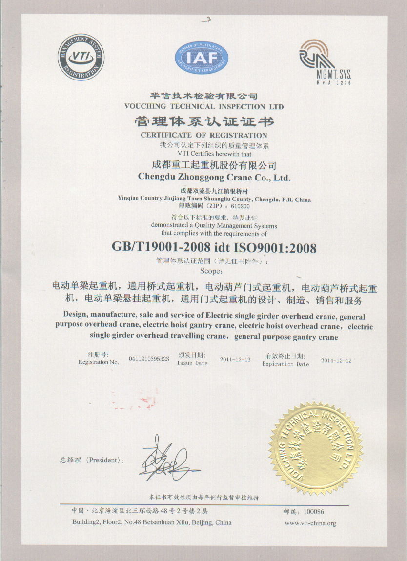 成都重工起重機股份有限公司©2012 版權所有 地址:成都市雙流西南航空港經濟開發區空港三路903號